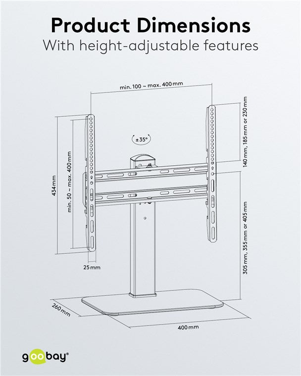 100 x 200 mm, 200 x 100 mm, 200 x 200 mm, 300 x 200 mm, 300 x 300 mm, 400 x 200 mm, 400 x 300 mm, 400 x 400 mm