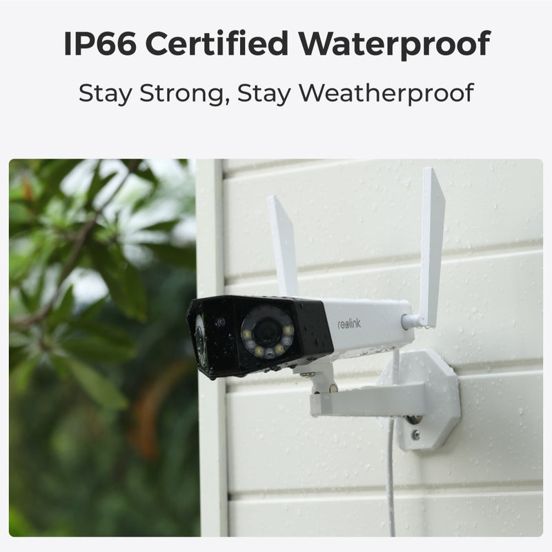 Withstanding harsh weather outdoors is never difficult because of Duo 2 WiFi's robust and waterproof housing. No fear of heat, cold, or powerful jets of water.