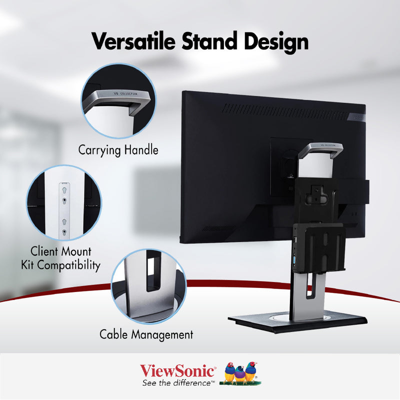 In addition to the single cable USB Type-C connectivity that reduces the reliance on multiple cables and adapters, the monitor’s stand is also designed with cable management and client mount capability to create a cleaner looking space.*Client Mount Kit must be used to attach a mini PC. Client mount kit is sold separately.