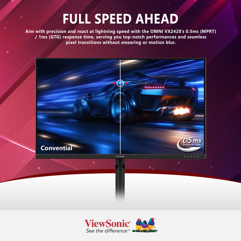 Aim with precision and react at lightning speed with the OMNI VX2428’s 0.5ms (MPRT) / 1ms (GTG) response time, serving you top-notch performances and seamless pixel transitions without smearing or motion blur. This secret weapon will have you in the lead as you grind the ladder of your favorite FPS, as well as make the most of every thrilling scene in films.