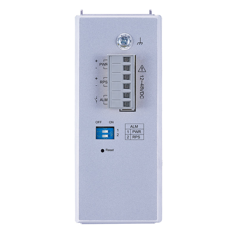 Industrial Ethernet Network-9648M. Redundant power system with standard industrial terminal block for uninterrupted operation. Primary power failure activates secondary power for continuous service. Ideal for mission-critical industrial applications.