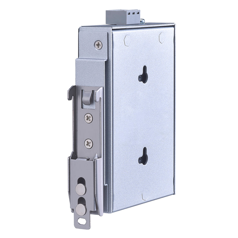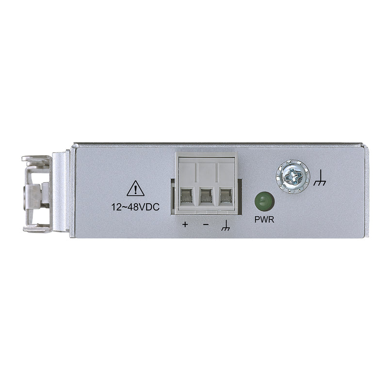 INS-8405A works as soon as it is connected and makes installation convenient. One 12~48VDC power supply connects to the 3-pin terminal block for power. The 10/100/1000 Mbps ports use MDI/MDI-X connection for auto-negotiation to work as soon as connected to other network devices at the required speed without extra software installation needed. The LED light displays when the device is in operation. The slim and small design allows it to fit at different locations for many devices to operate in the same network and can be mounted to a standard TH35 DIN rail.