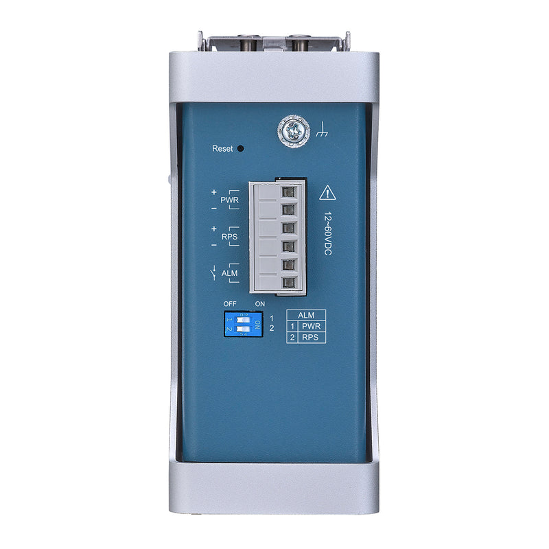 To guarantee power runs continuously the switch is designed to be simultaneously connected to two power supplies and an alarm through a standard industrial terminal block. If one power supply stops working the switch will start feeding its power on the alternative power supply and the alarm will go off to notify technicians about the event.