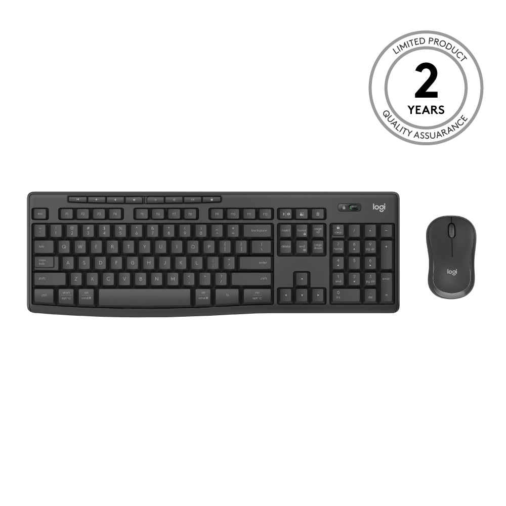The combo has a spill-resistant full-sized keyboard, silent-touch mouse, eight pre-programmed shortcut keys, and Logi Bolt for secure and robust wireless connectivity.