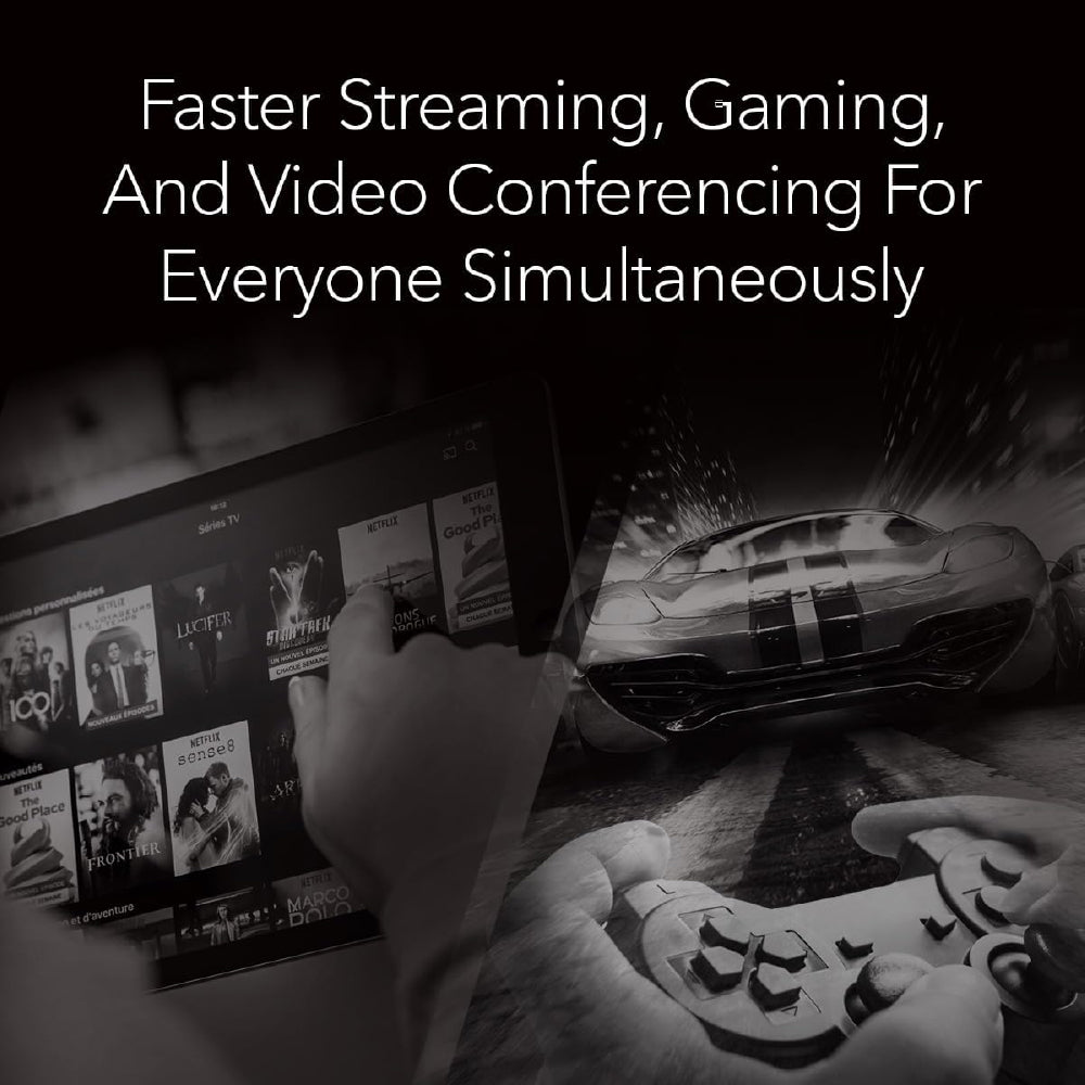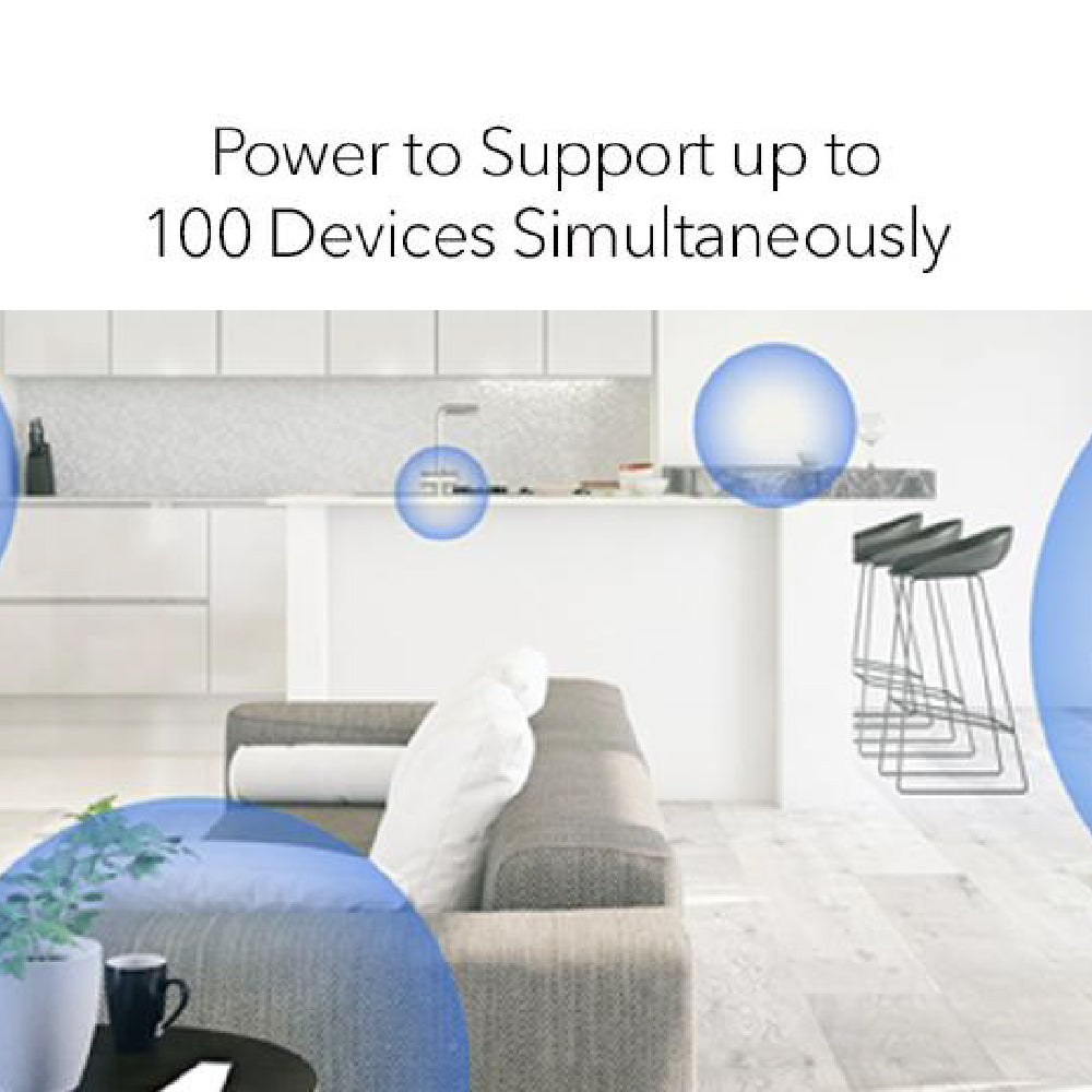 • Experience greater speed up to 5.7Gbps for ultra-low latency & more bandwidth with the new 6GHz band5 for up to 100 connected devices