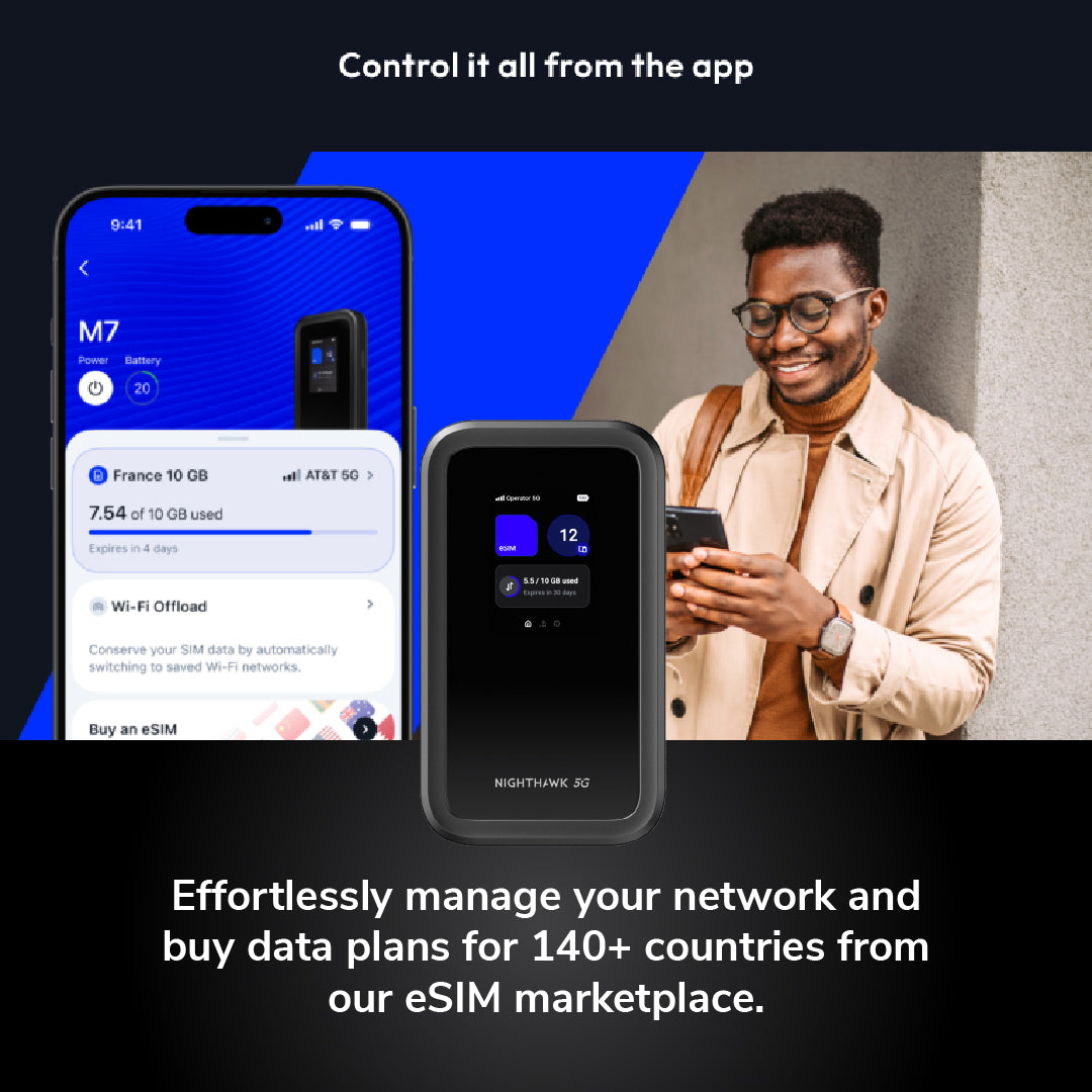 - International Roaming: 140+ countries with NETGEAR eSIM